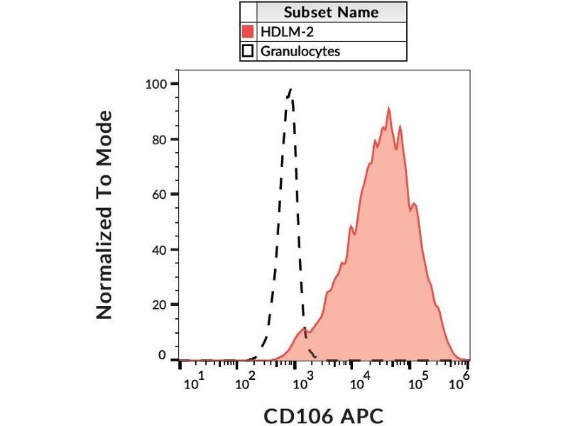 The mouse monoclonal antibody STA recognizes an extracellular epitope of CD106 antigen (VCAM-1), a 100-110 kDa type I membrane protein of the immunoglobulin superfamily, a crucial mediator of leukocyte adhesion, and a costimulation molecule.