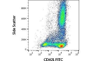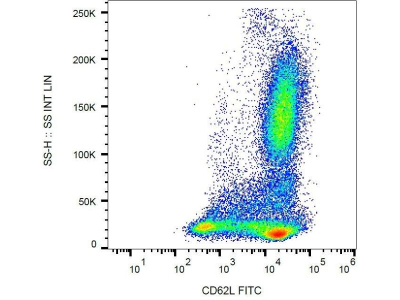 The mouse monoclonal antibody DREG56 recognizes an extracellular epitope of CD62L / L-selectin, a 65-76 kDa cell surface protein, expressed by neutrophils, monocytes, and subsets of T, B, and NK cells, that interacts with specific carbohydrates exposed on activated endothelial cells.