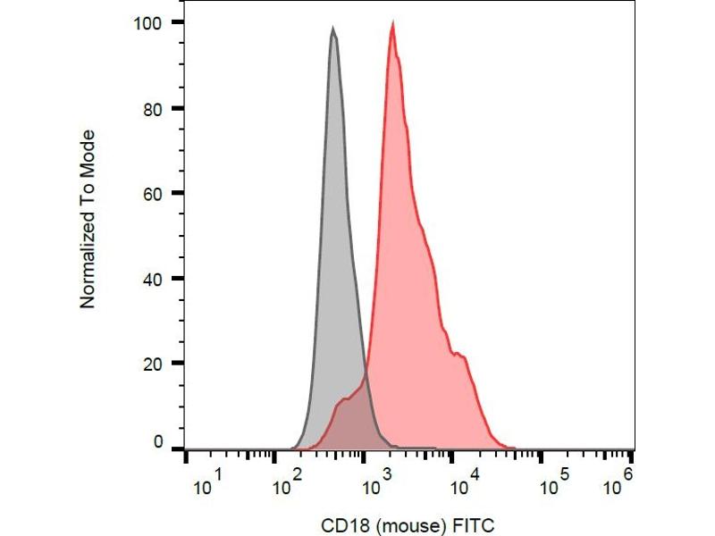 The rat monoclonal antibody M18/2 recognizes an extracellular epitope of CD18 antigen (integrin beta2 subunit, beta2 integrin), a 95 kDa type I transmembrane protein expressed on all leukocytes.