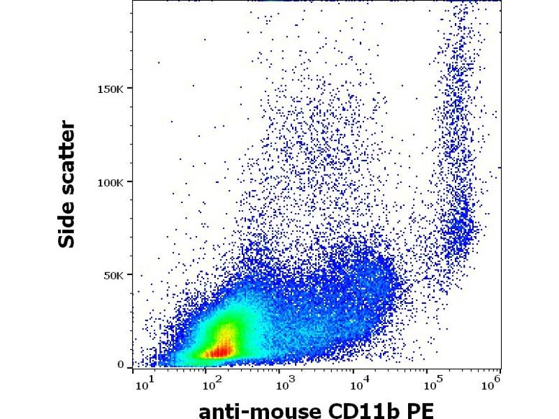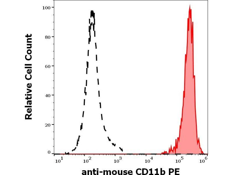 The rat monoclonal antibody M1/70 detects an extracellular epitope of CD11b (integrin alphaM subunit), a type I transmembrane protein mainly expressed on monocytes/macrophages, granulocytes and NK-cells, which associates with CD18 to form Mac-1 integrin that plays important role in cell-cell interactions.