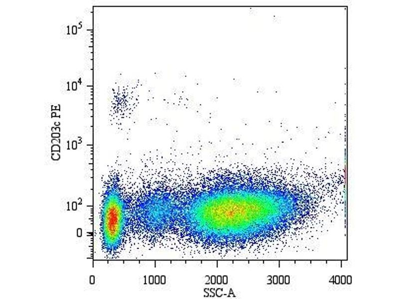 Ectonucleotide pyrophosphatase/phosphodiesterase 3,CD203c, also known as ENPP-3, is integral membrane ectoenzyme (ectonucleotide pyrophosphatase/phosphodiesterase 3), that hydrolyses nucleotide triphosphates and thus modulates purinergic signaling. CD203c is expressed mainly on activated basophils and mast cells. CD203c is upregulated in response to IgE-receptor cross-linking and is overexpressed on neoplastic mast cells in patients with systemic mastocytosis. Measurement of its induced enhancement on the plasma membrane is useful for diagnostics of allergies.,ENPP3, B10, PDNP3, PD-IBETA