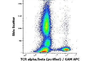 The Mouse Monoclonal anti-TCR alpha/beta antibody has been validated for FACS. It is suitable to detect TCR alpha/beta in samples from Human. There are 3+ publications available.