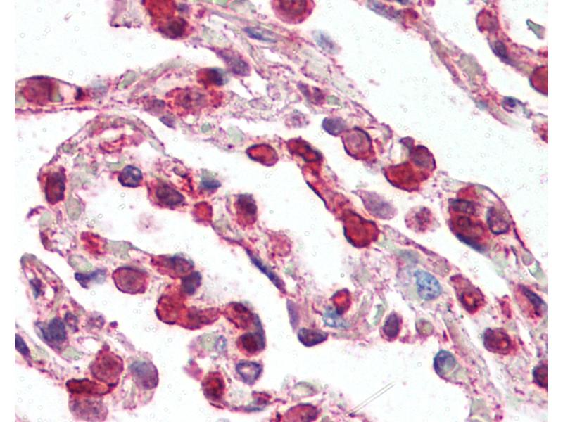 Usage: Immunohistochemistry: This antibody was validated for use in immunohistochemistry on a panel of 21 formalin-fixed, paraffin-embedded (FFPE) human tissues after heat induced antigen retrieval in  pH 6.0 citrate buffer. After incubation with the primary antibody, slides were incubated with biotinylated secondary antibody, followed by alkaline phosphatase-streptavidin and chromogen. The stained slides were evaluated by a pathologist to confirm staining specificity. The optimal working concentration for this antibody was determined to be 2.5 μg/mL.