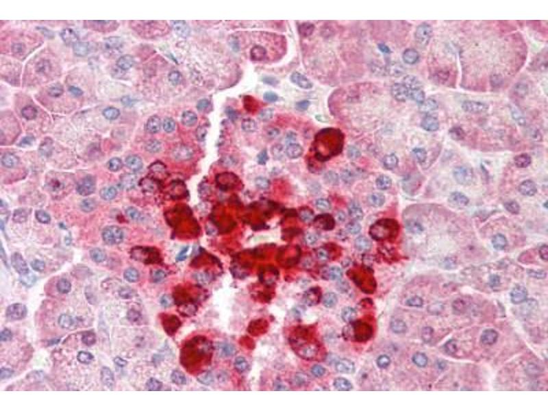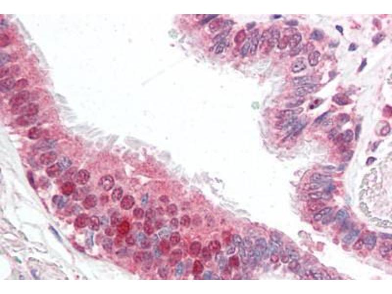 Usage: Immunohistochemistry: This antibody was validated for use in immunohistochemistry on a panel of 21 formalin-fixed, paraffin-embedded (FFPE) human tissues after heat induced antigen retrieval in pH 6.0 citrate buffer. After incubation with the primary antibody, slides were incubated with biotinylated secondary antibody, followed by alkaline phosphatase-streptavidin and chromogen. The stained slides were evaluated by a pathologist to confirm staining specificity. The optimal working concentration for this antibody was determined to be 5 μg/mL. Western Blot: Can be used for detection of FLIP by Western blot at 1:1000 dilution. 35 kD and 25 kD bands can be detected. The antibody recognizes human and murine FLIPg and FLIPd but not FLIPa and FLIPb. -