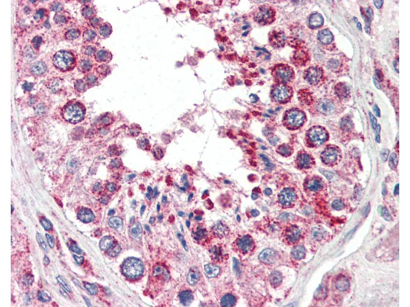 Usage: Immunohistochemistry: This antibody was validated for use in immunohistochemistry on a panel of 21 formalin-fixed, paraffin-embedded (FFPE) human tissues after heat induced antigen retrieval in pH 6.0 citrate buffer. After incubation with the primary antibody, slides were incubated with biotinylated secondary antibody, followed by alkaline phosphatase-streptavidin and chromogen. The stained slides were evaluated by a pathologist to confirm staining specificity. The optimal working concentration for this antibody was determined to be 2.5 μg/mL. -