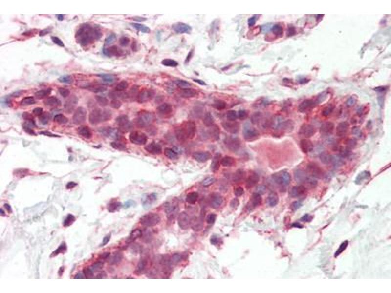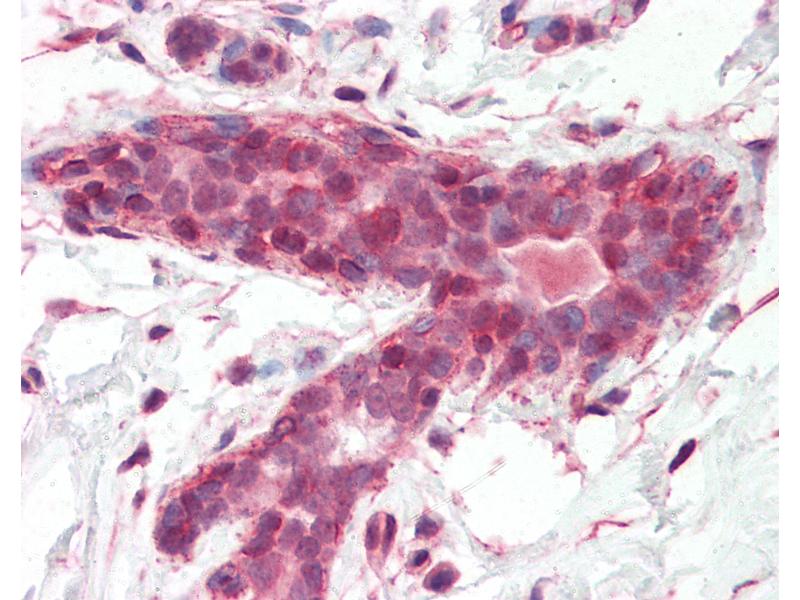 Usage: Immunohistochemistry: This antibody was validated for use in immunohistochemistry on a panel of 21 formalin-fixed, paraffin-embedded (FFPE) human tissues after heat induced antigen retrieval in pH 6.0 citrate buffer. After incubation with the primary antibody, slides were incubated with biotinylated secondary antibody, followed by alkaline phosphatase-streptavidin and chromogen. The stained slides were evaluated by a pathologist to confirm staining specificity. The optimal working concentration for this antibody was determined to be 10 μg/mL. -