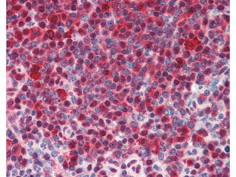 Usage: Immunohistochemistry: This antibody was validated for use in immunohistochemistry on a panel of 21 formalin-fixed, paraffin-embedded (FFPE) human tissues after heat induced antigen retrieval in pH 6.0 citrate buffer. After incubation with the primary antibody, slides were incubated with biotinylated secondary antibody, followed by alkaline phosphatase-streptavidin and chromogen. The stained slides were evaluated by a pathologist to confirm staining specificity. The optimal working concentration for this antibody was determined to be 10 μg/mL. -