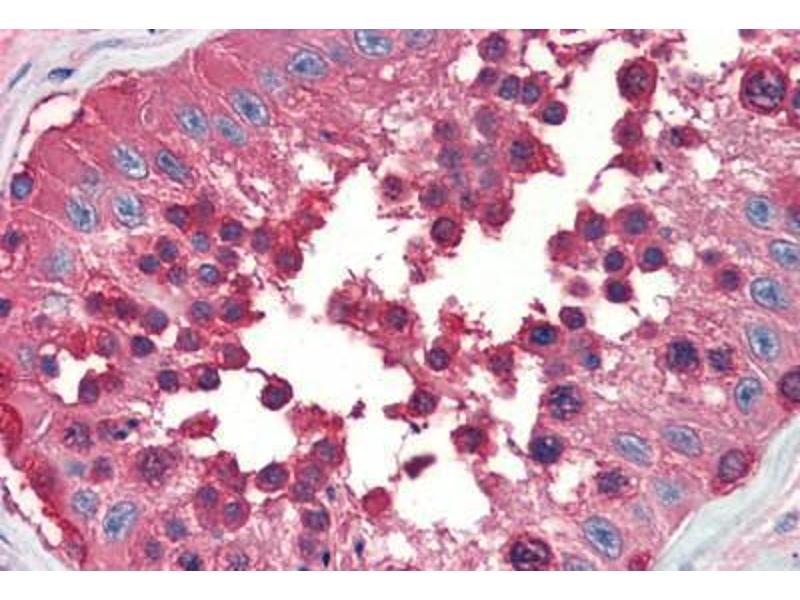 Usage: Immunohistochemistry: This antibody was validated for use in immunohistochemistry on a panel of 21 formalin-fixed, paraffin-embedded (FFPE) human tissues after heat induced antigen retrieval in pH 6.0 citrate buffer. After incubation with the primary antibody, slides were incubated with biotinylated secondary antibody, followed by alkaline phosphatase-streptavidin and chromogen. The stained slides were evaluated by a pathologist to confirm staining specificity. The optimal working concentration for this antibody was determined to be 10 μg/mL. -