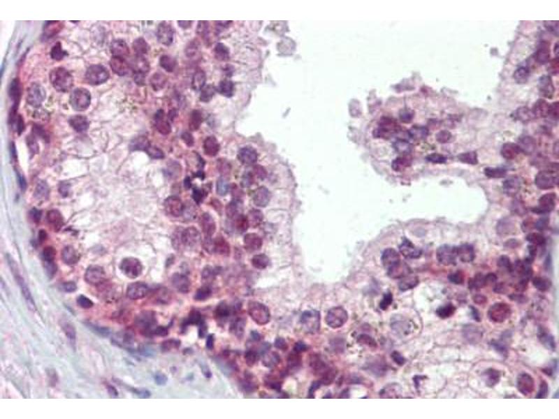 Usage: Immunohistochemistry: This antibody was validated for use in immunohistochemistry on a panel of 21 formalin-fixed, paraffin-embedded (FFPE) human tissues after heat induced antigen retrieval in pH 6.0 citrate buffer. After incubation with the primary antibody, slides were incubated with biotinylated secondary antibody, followed by alkaline phosphatase-streptavidin and chromogen. The stained slides were evaluated by a pathologist to confirm staining specificity. The optimal working concentration for this antibody was determined to be 10 μg/mL. -