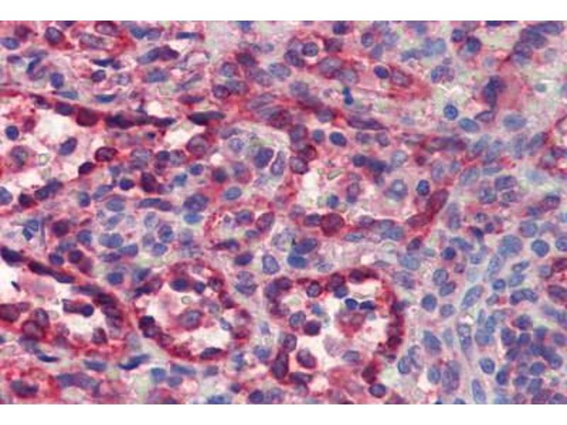 Usage: Immunohistochemistry: This antibody was validated for use in immunohistochemistry on a panel of 21 formalin-fixed, paraffin-embedded (FFPE) human tissues after heat induced antigen retrieval in pH 6.0 citrate buffer. After incubation with the primary antibody, slides were incubated with biotinylated secondary antibody, followed by alkaline phosphatase-streptavidin and chromogen. The stained slides were evaluated by a pathologist to confirm staining specificity. The optimal working concentration for this antibody was determined to be 5 μg/mL. -