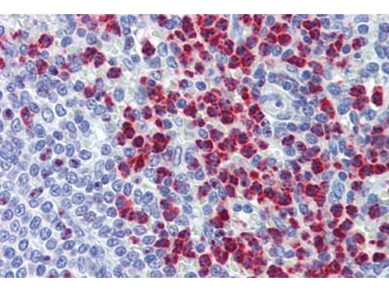Usage: Immunohistochemistry: This antibody was validated for use in immunohistochemistry on a panel of 21 formalin-fixed, paraffin-embedded (FFPE) human tissues after heat induced antigen retrieval in pH 6.0 citrate buffer. After incubation with the primary antibody, slides were incubated with biotinylated secondary antibody, followed by alkaline phosphatase-streptavidin and chromogen. The stained slides were evaluated by a pathologist to confirm staining specificity. The optimal working concentration for this antibody was determined to be 3.75 μg/mL. -