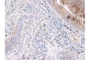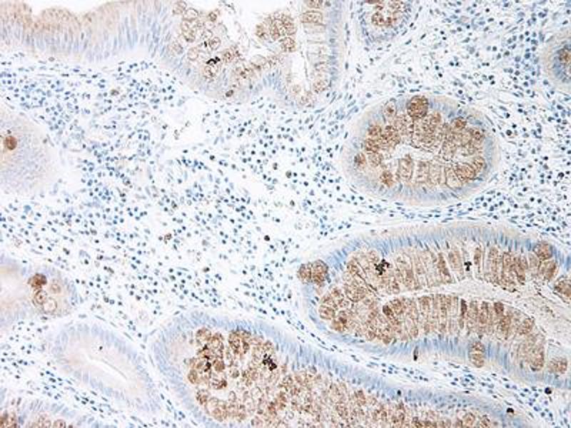 Usage: Immunohistochemistry: This antibody stained formalin-fixed, paraffin-embedded sections of human colon/rectum adenocarcinoma. The recommended concentration is 0.5 μg/mL with an overnight incubation at 4 °C. An HRP-labeled polymer detection system was used with a DAB chromogen. Heat induced antigen retrieval with a pH 6 sodium citrate buffer is recommended. Optimal concentrations and conditions may vary. Tissue samples were provided by the Cooperative Human Tissue Network, which is funded by the National Cancer Institute. Neutralization: To yield one-half maximal inhibition [ND] of the biological activity of hMIP-5 (50 ng/mL), a concentration of 1.75-3 μg/mL of this antibody is required. ELISA: To detect hMIP-5 by sandwich ELISA (using 100 μL/well antibody solution) a concentration of 0.5-2 μg/mL of this antibody is required. This antigen affinity purified antibody, in conjunction with Biotinylated Anti-Human MIP-5 (LS-C104743) as a detection antibody, allows the detection of at least 0.2-0.4 ng/well of recombinant hMIP-5. Western Blot: To detect hMIP-5 by Western Blot analysis this antibody can be used at a concentration of 0.1-0.2 μg/mL. Used in conjunction with compatible secondary reagents the detection limit for recombinant hMIP-5 is 1.5-3 ng/lane, under either reducing or non-reducing conditions. -