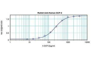 Usage: Neutralization: To yield one-half maximal inhibition [ND50] of the biological activity of hGCP-2 (100 ng/mL), a concentration of 2-5 μg/mL of this antibody is required. ELISA: To detect hGCP-2 by sandwich ELISA (using 100 μL/well antibody solution) a concentration of 0.5-2 μg/mL of this antibody is required. This antigen affinity purified antibody, in conjunction with Biotinylated Anti-Human GCP-2 (LS-C104349) as a detection antibody, allows the detection of at least 0.2-0.4 ng/well of recombinant hGCP-2. Western Blot: To detect hGCP-2 by Western Blot analysis this antibody can be used at a concentration of 0.1-0.2 μg/mL. Used in conjunction with compatible secondary reagents the detection limit for recombinant hGCP-2 is 1.5-3 ng/lane, under either reducing or non-reducing conditions. -