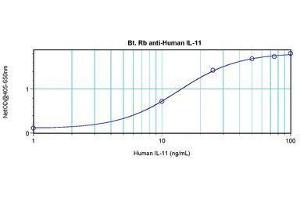 Usage: The applications listed have been tested for the unconjugated form of this product. Other forms have not been tested. ELISA: To detect hIL-11 by direct ELISA (using 100 μL/well antibody solution) a concentration of 0.25-1 μg/mL of this antibody is required. This biotinylated polyclonal antibody, in conjunction with compatible secondary reagents, allows the detection of at least 0.2-0.4 ng/well of recombinant hIL-11. To detect hIL-11 by sandwich ELISA (using 100 μL/well antibody solution) a concentration of 0.25-1 μg/mL of this antibody is required. This biotinylated polyclonal antibody, in conjunction with Polyclonal Anti-Human IL-11 (LS-C104366) as a capture antibody, allows the detection of at least 0.2-0.4 ng/well of recombinant hIL-11. Western Blot: To detect hIL-11 by Western Blot analysis this antibody can be used at a concentration of 0.1-0.2 μg/mL. Used in conjunction with compatible secondary reagents the detection limit for recombinant hIL-11 is 1.5-3 ng/lane, under either reducing or non-reducing conditions. -