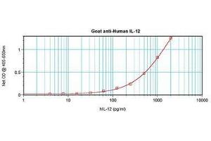 Usage: Neutralization: To yield one-half maximal inhibition [ND] of the biological activity of hIL-12 (0.3 ng/mL), a concentration of 012-02 μg/mL of this antibody is required. ELISA: To detect hIL-12 by sandwich ELISA (using 100 μL/well antibody solution) a concentration of 0.5-2 μg/mL of this antibody is required. This antigen affinity purified antibody, in conjunction with Biotinylated Anti-Human IL-12 (LS-C104425) as a detection antibody, allows the detection of at least 0.2-0.4 ng/well of recombinant hIL-12. Western Blot: To detect hIL-12 by Western Blot analysis this antibody can be used at a concentration of 0.1-0.2 μg/mL. Used in conjunction with compatible secondary reagents the detection limit for recombinant hIL-12 is 1.5-3 ng/lane, under either reducing or non-reducing conditions. -