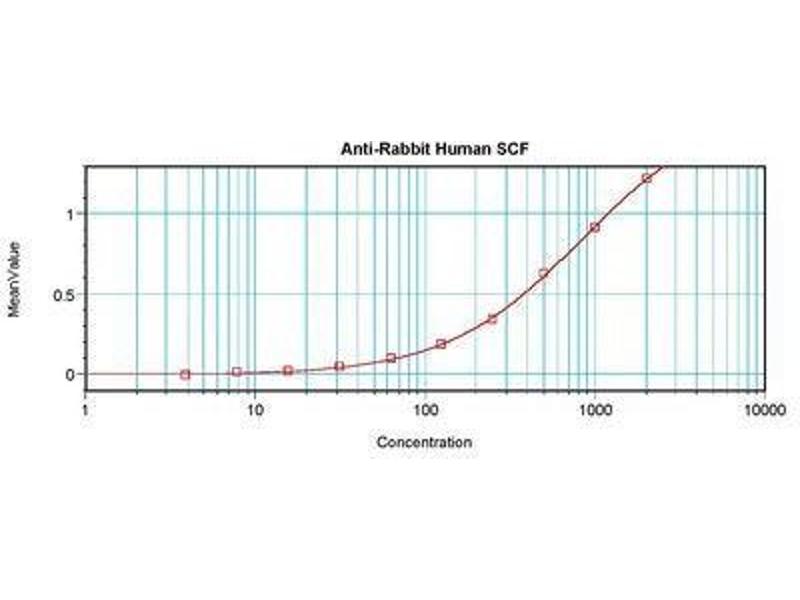 Usage: Immunohistochemistry: This antibody stained formalin-fixed paraffin-embedded sections of human pancreas adenocarcinoma tissue. The recommended concentration is 0.5 μg/mL-1 μg/mL with an overnight incubation at 4 °C. An HRP-labeled polymer detection system was used with an alcohol-soluble AEC chromogen. Optimal results for these conditions were achieved with enzyme induced antigen retrieval (proteinase K) at room temperature. Optimal concentrations and conditions may vary. *Additional Immunostaining data available. Please contact Tech Support for information. Neutralization: To yield one-half maximal inhibition [ND] of the biological activity of hSCF (10.00 ng/mL), a concentration of 0.64-0.96 μg/mL of this antibody is required. ELISA: To detect hSCF by sandwich ELISA (using 100 μL/well antibody solution) a concentration of 0.5-2 μg/mL of this antibody is required. This antigen affinity purified antibody, in conjunction with Biotinylated Anti-Human SCF (LS-C104672) as a detection antibody, allows the detection of at least 0.2-0.4 ng/well of recombinant hSCF. Western Blot: To detect hSCF by Western Blot analysis this antibody can be used at a concentration of 0.1-0.2 μg/mL. Used in conjunction with compatible secondary reagents the detection limit for recombinant hSCF is 1.5-3 ng/lane, under either reducing or non-reducing conditions.