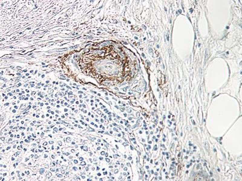 Usage: Immunohistochemistry: This antibody stained formalin-fixed, paraffin-embedded sections of human pancreas adenocarcinoma. The recommended concentration is 0.5 mg/mL with an overnight incubation at 4 °C. An HRP-labeled polymer detection system was used with a DAB chromogen. Optimal results were achieved without antigen retrieval. Optimal concentrations and conditions may vary. Neutralization: To yield one-half maximal inhibition [ND50] of the biological activity of Human beta-NGF (1 ng/mL), a concentration of 0.05-0.08 μg/mL of this antibody is required. ELISA: To detect Human beta-NGF by sandwich ELISA (using 100 μL/well antibody solution) a concentration of 0.5-2 μg/mL of this antibody is required. This antigen affinity purified antibody, in conjunction with Biotinylated Anti-Human beta-NGF (LS-C104735) as a detection antibody, allows the detection of at least 0.2-0.4 ng/well of recombinant Human beta-NGF. Western Blot: To detect Human beta-NGF by Western Blot analysis this antibody can be used at a concentration of 0.1-0.2 μg/mL. When used in conjunction with compatible secondary reagents, the detection limit for recombinant Human beta-NGF is 1.5-3 ng/lane, under either reducing or non-reducing conditions. -