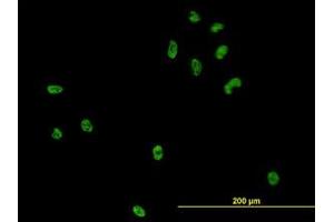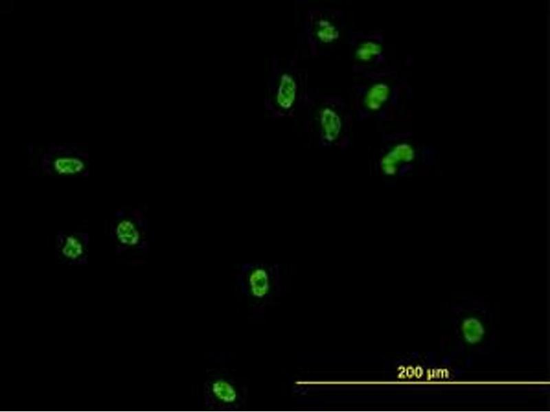 Usage: Western Blot (Cell lysate) - positive control HeLa NE. Immunofluorescence (10 μg/mL) - positive control HeLa cells. Sandwich ELISA (Recombinant protein).