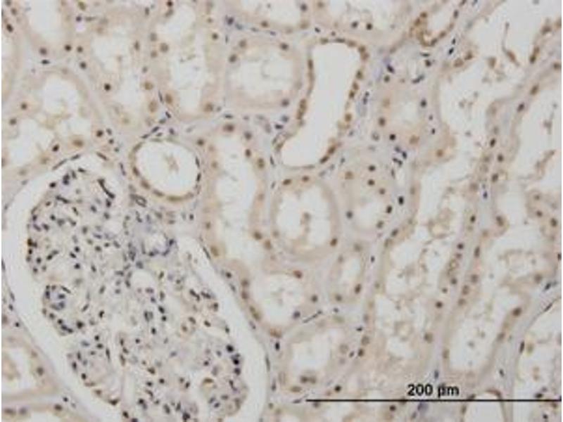 Usage: Immunohistochemistry (Formalin/PFA-fixed paraffin-embedded sections, 3 μg/mL) - positive control human kidney. Sandwich ELISA (Recombinant protein).