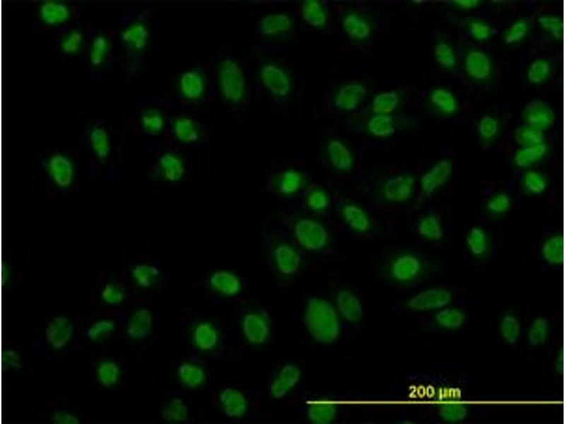 Usage: Western Blot (Cell lysate) - positive control HeLa NE. Immunohistochemistry (Formalin/PFA-fixed paraffin-embedded sections, 3 μg/mL) - positive control human ovary. Immunofluorescence (10 μg/mL) - positive control HeLa cells. Sandwich ELISA (Recombinant protein).