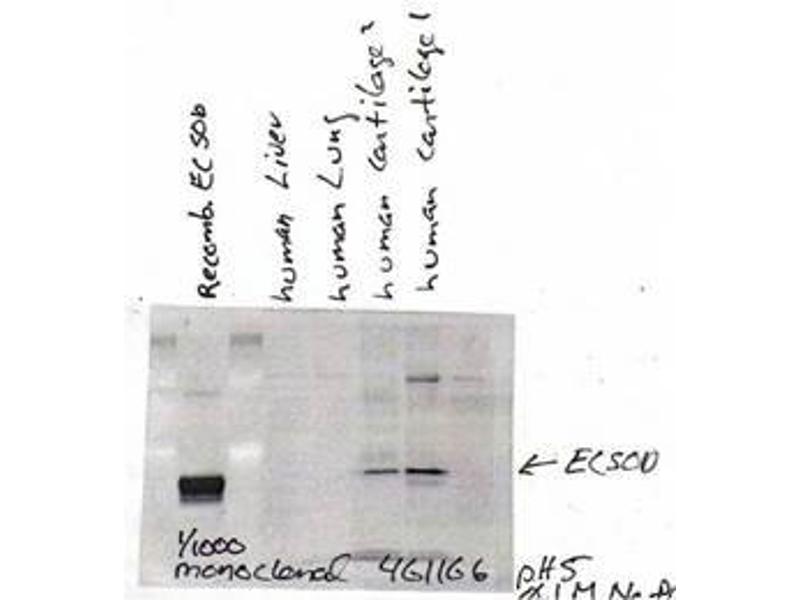 - Detects EC-SOD ~35kD, does not cross react with other SODs.