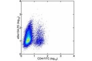 Usage: This 13A antibody is offered in 2 formats:- μg size: has been tested intracellular staining of cultured mouse splenocytes. This can be used at less than or equal to 0.25 μg per test. A test is defined as the amount (ug)/test of antibody that will stain a cell sample in a final volume of 100 μL. Cell number should be determined empirically but can range from 10^5 to 10^8 cells/test. - test size: has been pre-titrated and tested intracellular staining of cultured mouse splenocytes. This can be used at test size: 5 μL (0.125 μg)/per test The pre-titrated test size contains BSA and/or gelatin for protein stabilization. The applications listed have been tested for the unconjugated form of this product. Other forms have not been tested. -