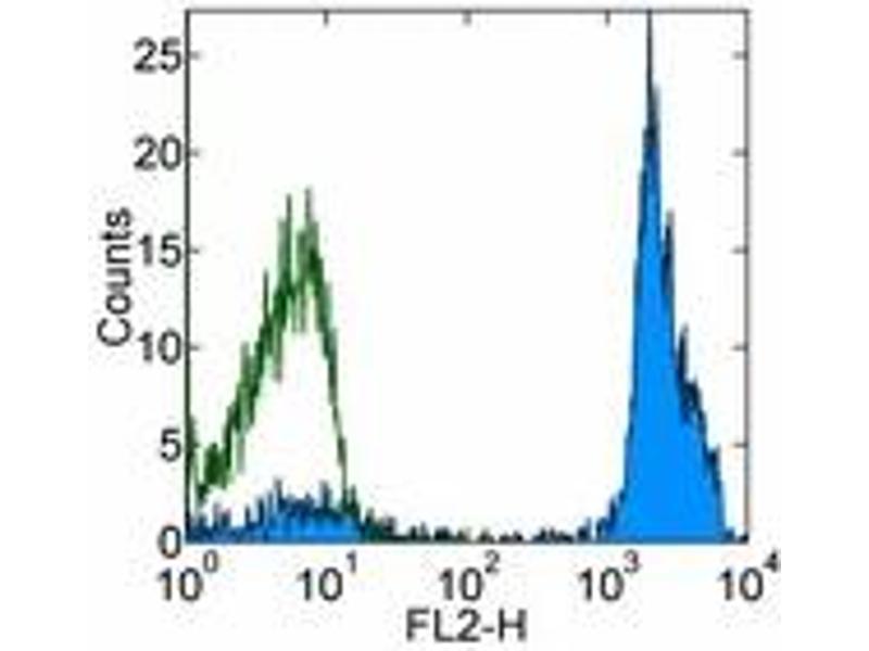 Usage: The RPA-2.10 antibody has been tested by flow cytometric analysis of human peripheral blood leukocytes. This can be used at less than or equal to 1 μg per test. A test is defined as the amount (ug) of antibody that will stain a cell sample in a final volume of 100 μL. Cell number should be determined empirically but can range from 10^5 to 10^8 cells/test. It is recommended that the antibody be carefully titrated for optimal performance in the assay of interest. The applications listed have been tested for the unconjugated form of this product. Other forms have not been tested. -