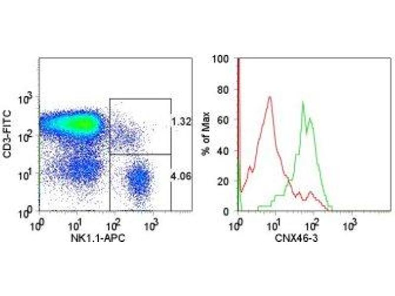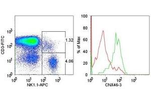 Usage: This CNX46-3 (CNX46-3) antibody has been tested by flow cytometric analysis of C57BL/6 mouse splenocyte suspensions. This can be used at less than or equal to 1 μg per test. A test is defined as the amount (ug) of antibody that will stain a cell sample in a final volume of 100 μL. Cell number should be determined empirically but can range from 10^5 to 10^8 cells/test. It is recommended that the antibody be carefully titrated for optimal performance in the assay of interest. -