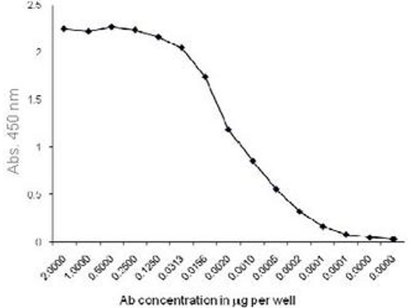 Indirect ELISA (1-2 μg/mL): Detect up to 20 ng of coated antigen. Western blotting (approx. 4 μg/mL): Detects Rat Pancreatic Amylase at the expected MolecularWeight at approx. 54 kDa. Other applications not tested. Optimal dilutions are dependent on conditions and should be determined by the user.