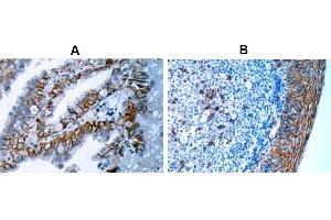 Syndecan-1 (CD138) is a heparan sulfate proteoglycan expressed on the surface of plasma cel1s and some epithelial cells where it mediates cell-cell and cell-extracellular matrix adhesion, and may facilitate the binding of growth factors to their high-affinity receptors as shown for basic fibroblast growth factor (b-FGF). It has been reported that altered expression of syndecan-1 in several tumors such as colorectal cancer, esophageal carcinoma, lung carcinoma, gastric cancer and multiple myeloma, and alteration of syndecan-1 expression in the tumors correlated with patients survival rate, stage, or metastasis.Synonyms: SDC, SDC1, SYND1