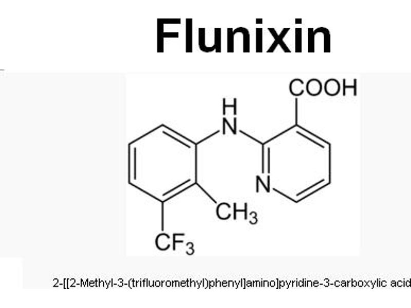 - Flunixin meglumine is a member of the nonsteroidal anti-inflammatory drugs (NSAID's) used for pain relief (particularly colic), counteract the effects of trauma, bring down fever, and block the effects of endotoxins on tissue. Frequently used to treat medical colics though care must be exercised as it may prevent early recognition of surgical problems by covering up symptoms. Flunixin is useful as a medium duration analgesic and anti-inflammatory drug. Like other NSAIDs, it also has some anti-pyretic properties. It is used for visceral or musculoskeletal pain in horses.