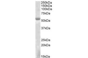 Peptide ELISA: 1/16000. Western blot: Approx 55 kDa band observed in lysates of cell lline HEK293 (calculated MWof 60.5 kDa according to NP_742056.1). Recommended concentration: 1 - 3 μg/mL.