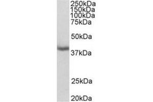 Peptide ELISA: 1/64000. Western blot: Preliminary experiments gave an approx 40 kDa band in Human Liver lysatesand an approx 100 kDa band in Human Heart lysates at 1 μg/mL. Please note that currentlywe cannot find an explanation in the literature for the bands we observe given thecalculated size of 37.0 kDda according to NP_006782.1. Immunohistochemistry on paraffin sections: Human Uterus shows nuclear staining in theepithelial cells of the endometrial glands. Recommended concentration: 2 - 4 μg/mL.