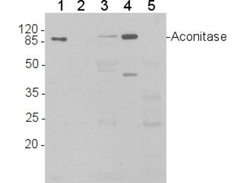 Expected / apparent Molecular Weight of the Antigene: 98 kDa. Note that ACO1, ACO2 and ACO3 cannot be distinguished in size by standard SDS-PAGE.