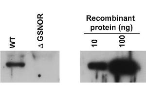AGI Code: At5g43940 S-nitrosoglutathione reductase (GSNOR) is a cytoplasm localized enzyme which plays a key role in formaldehyde detoxification and is down regulated by wounding and activated by salicylic acid (SA). Alternative protein names: Alcohol dehydrogenase class-3, Alcohol dehydrogenase class-III, FALDH, FDH formaldehyde dehydrogenase, alcohol dehydrogenase III, HOT5, S-(hydroxymethyl)glutathione dehydrogenase, Glutathione-dependent formaldehyde dehydrogenase, GSH-FDH