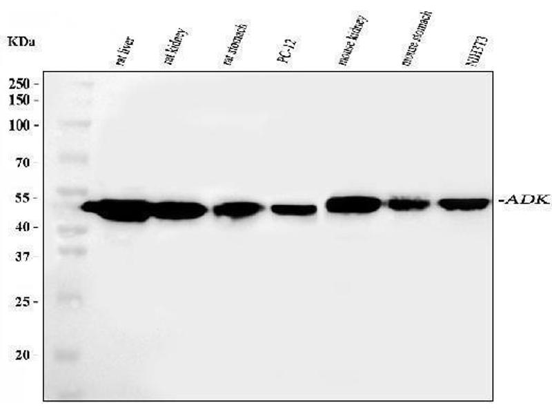- Anti-ADK Antibody (ABIN4886430). Tested in IF, IHC, ICC, WB applications. This antibody reacts with Human, Mouse, Rat. This is a premium antibody that guarantees superior quality, high affinity, and strong signals with minimal background in Western blot applications.