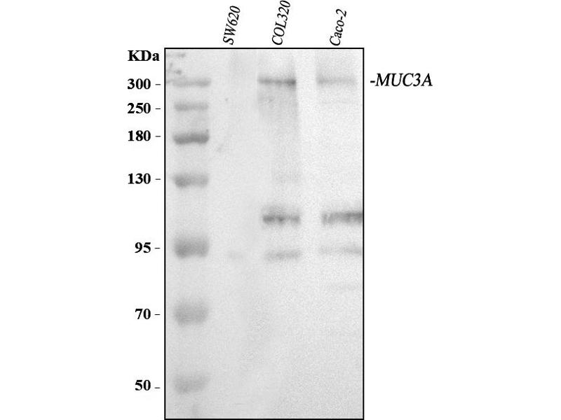 - Anti-MUC3/MUC3A/MUC3B Antibody (ABIN4886675). Tested in WB applications. This antibody reacts with Human. This is a premium antibody that guarantees superior quality, high affinity, and strong signals with minimal background in Western blot applications.