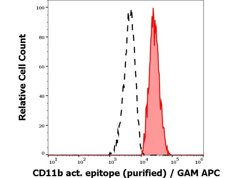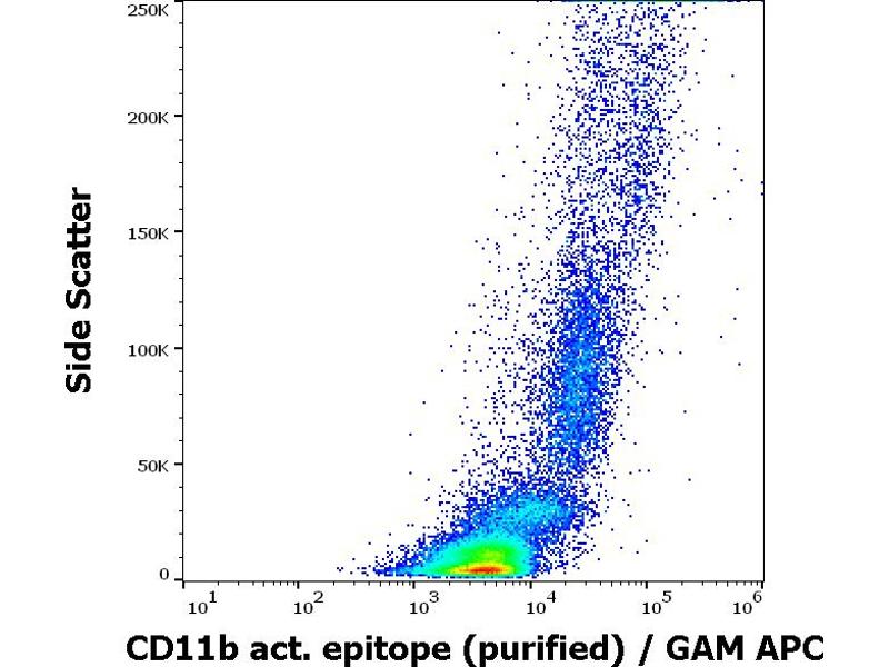 The mouse monoclonal antibody CBRM1/5 recognizes an activation-dependent epitope on extracellular part of CD11b (Mac-1alpha), a 165-170 kDa type 1 transmembrane protein mainly expressed on monocytes, granulocytes and NK-cells. The antibody recognizes a subset of CD11b molecules on neutrophils and monocytes activated with chemoattractants or phorbol esters and it does not recognize CD11b on non-activated cells.