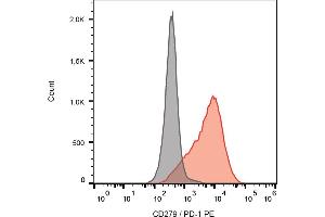 The mouse monoclonal antibody EH12.2H7 recognizes an extracellular epitope of CD279 / PD-1 (programmed cell death 1), a 55 kDa type I transmembrane protein expressed above all during T cell development, on activated T cells, activated B cells, and activated monocytes.