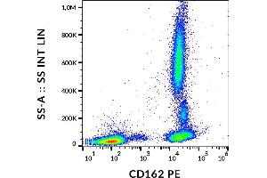 Selectin P ligand,CD162 (P-selectin glycoprotein ligand-1, PSGL-1) is a sialomucin constitutively expressed as a disulfide-linked homodimer of two 120 kDa subunits on the surface of circulating leukocytes. CD162 serves as a ligand for P- E- and L-selectin, with the highest affinity for P-selectin. It is thus involved in leukocyte rolling at the endothelial surfaces, prerequisite for firm leukocyte adhesion and subsequent transendothelial migration. CD162 also mediates leukocyte-platelet adhesion and interleukocyte contacts. Whereas serving as an adhession molecule on mature leukocytes, CD162 is a potent negative regulator of human hematopoietic progenitors.,PSGL-1, Selectin P ligand, SELPLG, CLA