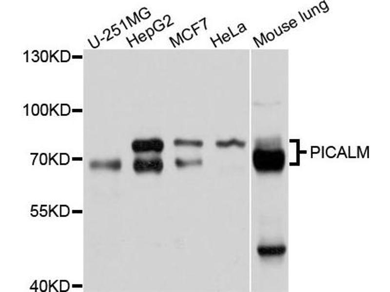 This gene encodes a clathrin assembly protein, which recruits clathrin and adaptor protein complex 2 (AP2) to cell membranes at sites of coated-pit formation and clathrin-vesicle assembly. The protein may be required to determine the amount of membrane to be recycled, possibly by regulating the size of the clathrin cage. The protein is involved in AP2-dependent clathrin-mediated endocytosis at the neuromuscular junction. A chromosomal translocation t(10,11)(p13,q14) leading to the fusion of this gene and the MLLT10 gene is found in acute lymphoblastic leukemia, acute myeloid leukemia and malignant lymphomas. The polymorphisms of this gene are associated with the risk of Alzheimer disease. Multiple alternatively spliced transcript variants encoding different isoforms have been found for this gene.