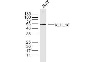 Background: KLHL18 is a 574 amino acid protein that is related to the Drosophila kelch protein, which is required to maintain actin organization in ovarian ring canals. Mutations affecting Kelch function result in failure of Kelch to associate with the ring canals and subsequent female sterility. Human KLHL18 protein contains six kelch repeats, one BACK (BTB/Kelch associated) domain and one BTB (POZ) domain. The BTB (Broad-Complex, Tramtrack and Bric a brac) domain, also known as the POZ (Poxvirus and Zinc finger) domain, is an N-terminal homodimerization domain that contains multiple copies of kelch repeats and/or C2H2-type zinc fingers. Proteins that contain BTB domains are thought to be involved in transcriptional regulation via control of chromatin structure and function. There are two isoforms of KLHL18 that are produced as a result of alternative splicing events.