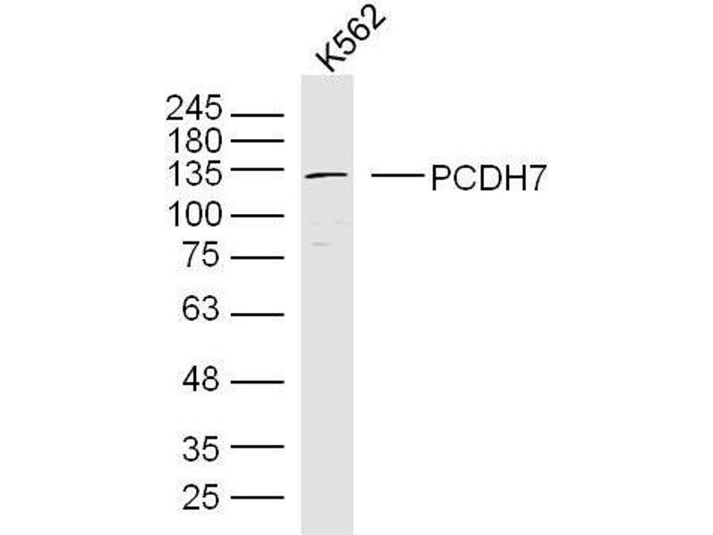 Background: As a subfamily of the cadherin superfamily, protocadherins are cadherin-like cell adhesion proteins that contain up to seven extracellular domains and are predominantly expressed in the nervous system. Importantly, the adhesion mechanism of protocadherins is distinct from classic cadherins. Through inactivation or overexpression, several protocadherins have been implicated in a variety of cancers. PCDH7 (protocadherin 7), also known as BHPCDH or BH-Pcdh, is a 1069 amino acid single-pass I membrane protein that is expressed in the brain and heart. Containing seven cadherin domains, PCDH7 is thought to function in cell-cell recognition and adhesion. PCDH7 exists as three isoforms due to alternative splicing events.