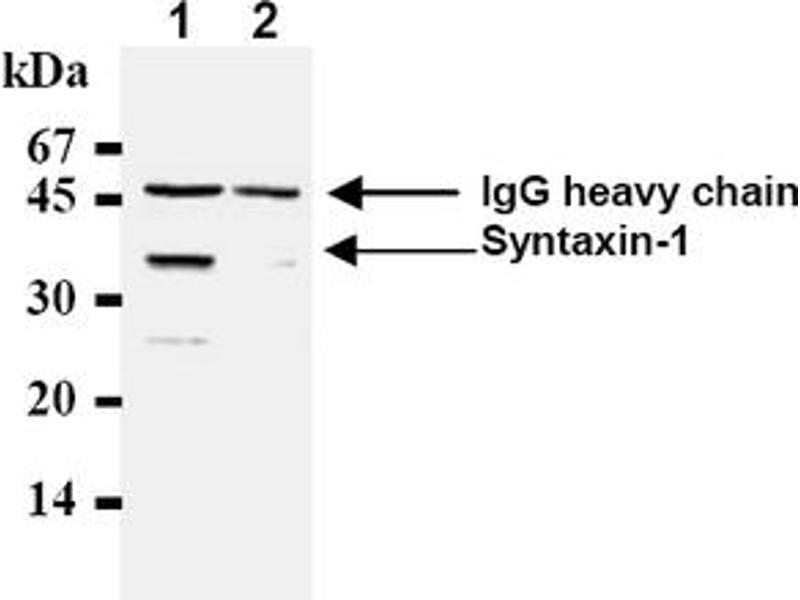 This antibody reacts with 35 kDa membrane protein Syntaxin-1 expressed predominantly in neuronal tissues on Western blotting, Immunoprecipitation and Immunohistochemistry.