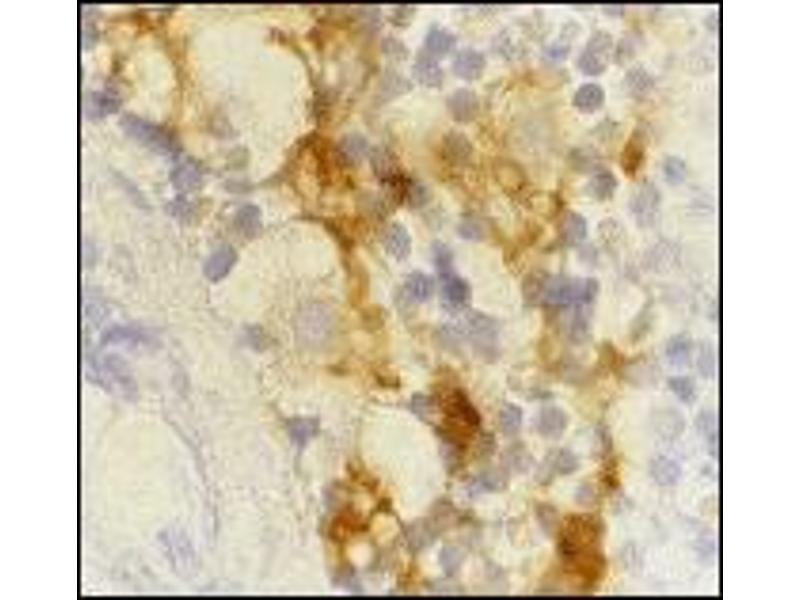 - Dendritic cells (DCs) that control immune responses were recently found to capture and transport HIV from the mucosal area to remote lymph nodes (1), where DCs hand over HIV to CD4+ T lymphocytes. DCs also amplify the amount of virus and extend the duration of viral infectivity. Multiple strains of HIV-1, HIV-2 and SIV bind to DCs via DC-SIGN (2). ICAM-3 is the natural ligand for DC-SIGN (3). A DC-SIGN homologue (termed DC-SIGNR, L-SIGN, and DC-SIGN2) was identified recently (4-8). DC-SIGN forms a novel gene family with DC-SIGNR and many alternatively spliced isoforms of DC-SIGN and DC-SIGNR (8). The expression of DC-SIGN was found in mucosal tissues including placenta, small intestine, and rectum.Synonyms: C-type lectin domain family 4 member L, CLEC4L, DC-SIGN1, DCSIGN, DCSIGN1, Dendritic Cell Marker, Dendritic cell-specific ICAM-3-grabbing non-integrin 1