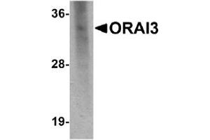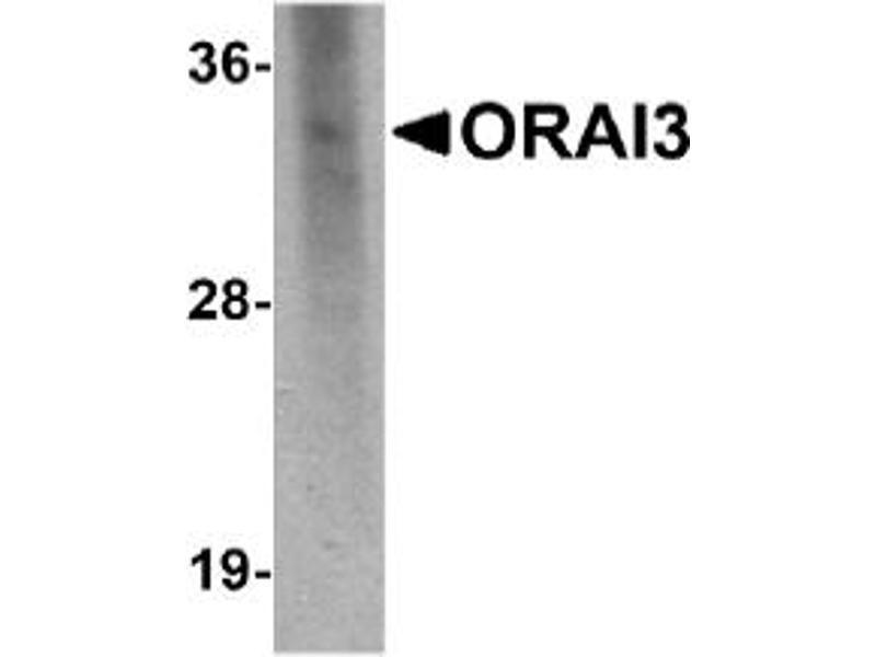 Recognizes ORAI3. This antibody is predicted to have no cross-reactivity to ORAI1 or ORAI2. Larger molecular weight bands are sometimes seen in SDS-PAGE, these may represent post-translationally modified ORAI3.