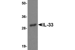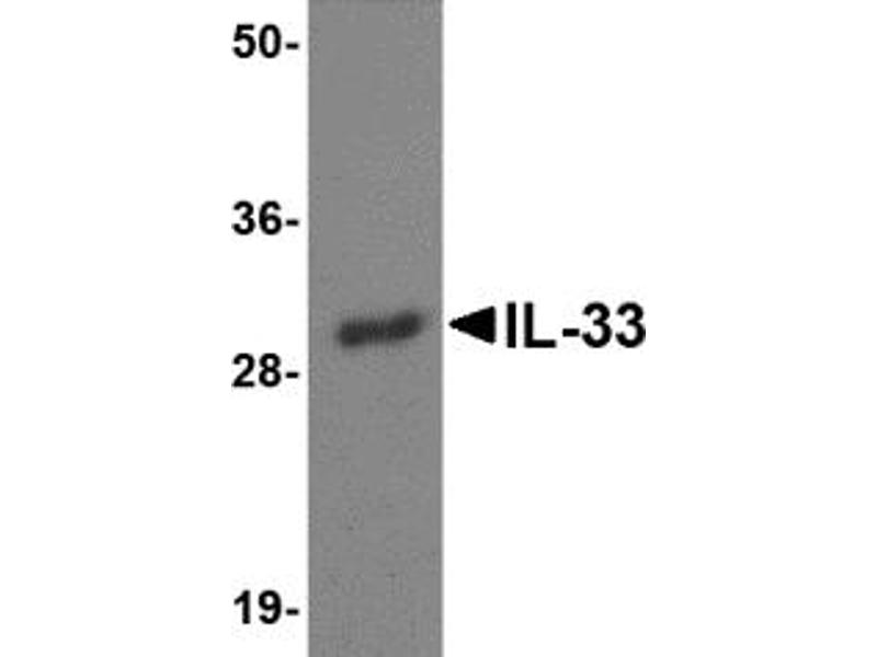 ELISA. Western Blot: IL33 antibody can be used for detection of IL33 at 1 μg/mL. Positive Control: Recombinant IL-33 Protein. Immunohistochemistry: 5 μg/mL. Positive Control: Human lymph node tissue. Other applications not tested. Optimal dilutions are dependent on conditions and should be determined by the user.