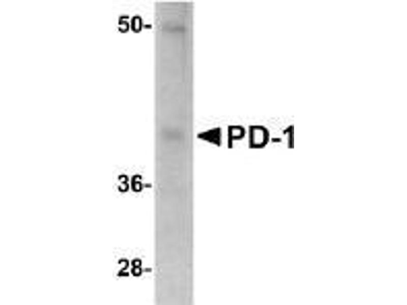 Cell-mediated immune responses are initiated by T lymphocytes that are themselves stimulated by cognate peptides bound to MHC molecules on antig en-presenting cells (APC). T-cell activation is generally self-limited as activated T cells express receptors such as PD-1 (also known as PDCD-1) that mediate inhibitory signals from the APC. PD-1 can bind two different but related ligands, PDL-1 and PDL-2. Upon binding to either of these ligands, signals generated by PD-1 inhibit the activation of the immune response in the absence of Synonyms: PDCD1, Programmed cell death protein 1, Protein PD-1, hPD-1