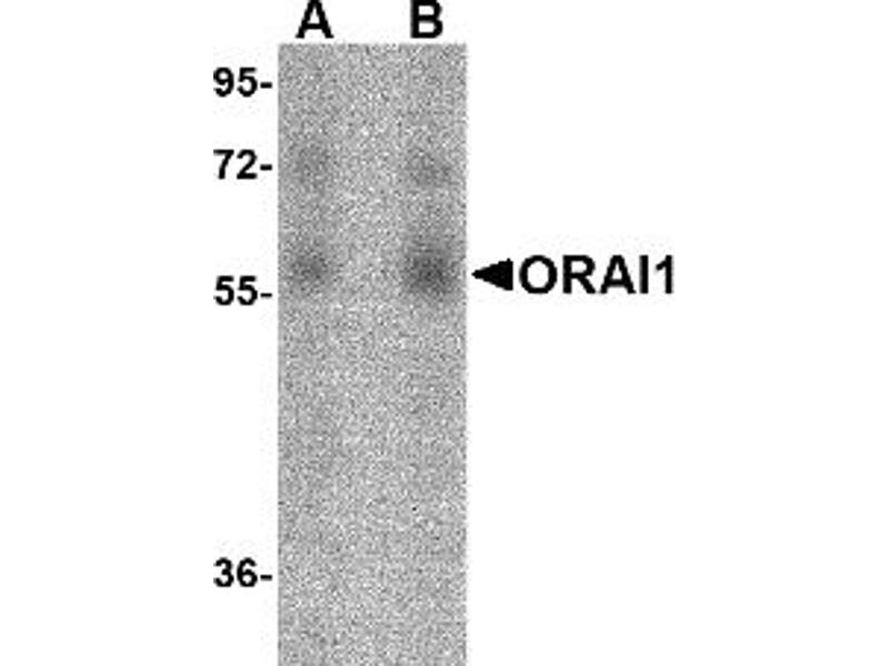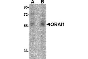 Antigen stimulation of immune cells triggers Ca++ entry through Ca++ release-activated Ca++ (CRAC) channels (1 for review). ORAI1 is a recently identified four-transmembrane spanning protein that is an essential component of CRAC. A missense mutation in this protein in humans is the cause of one fo rm of hereditary severe combined immune deficiency (SCID) which results in ablated T-cell Ca++ entry (2). It has been suggested that ORAI1 functions as a highly selective Ca++ plasma membrane channel that is gated through interactions with STIM1, the store-activated endoplasmic reticulum Ca++ sensor (3). ORAI1 often migrates at a higher than expected molecular weight in SDS-PAGE.Synonyms: CRACM1, Calcium release-activated calcium channel protein 1, ORAI-1, Protein orai-1, TMEM142A, Transmembrane protein 142A