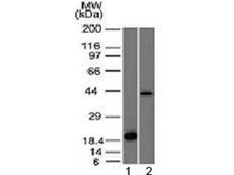 Recognizes a protein of 39-45 kDa, which is identified as Aurora B. The serine/threonine protein kinase aurora B (Aurora B) is a chromosomal passenger protein critical for accurate chromosome segregation, cytokinesis, protein localization to the centromere and kinetochore, correct microtubule-kinetochore attachment, and regulation of the mitotic checkpoint. Aurora B forms a tight complex with inner centrosome protein and survivin. Inactivation of any of these proteins causes similar defects in chromosome segregation. A significant overexpression of Aurora B has been found in a variety of human tumors including non-small cell lung carcinoma, astrocytoma, seminoma and carcinomas of the colon, prostate, endometrium and thyroid. The expression level of Aurora B is associated with cell proliferation and prognosis in these tumors.